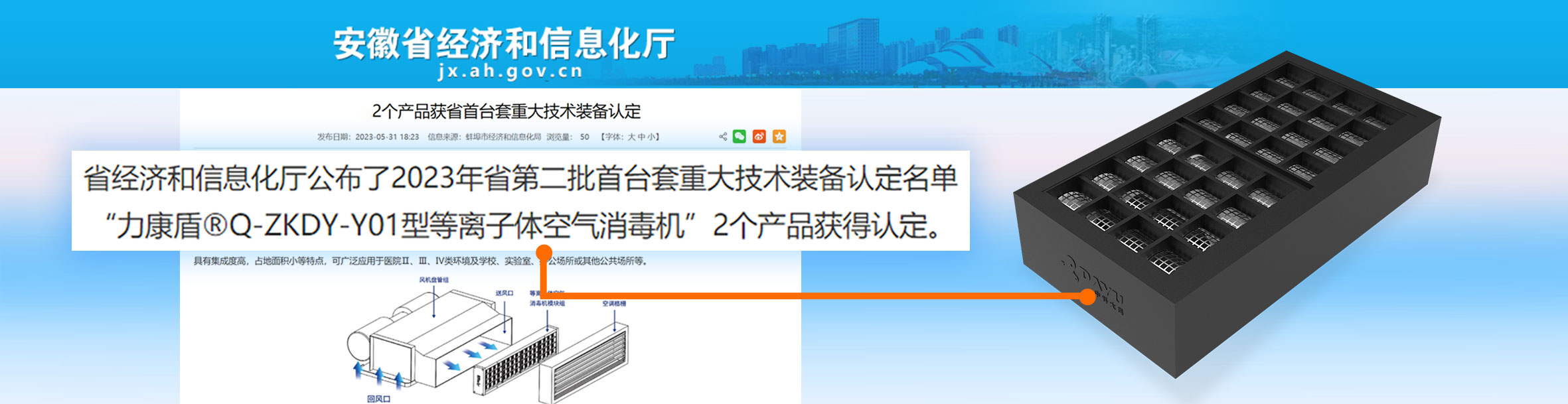 • 力康盾?ZKDY-G-180-P型等離子體空氣消毒機入選2024年度第三批安徽省首臺套重大技術(shù)裝備,評定等級:國內(nèi)先進