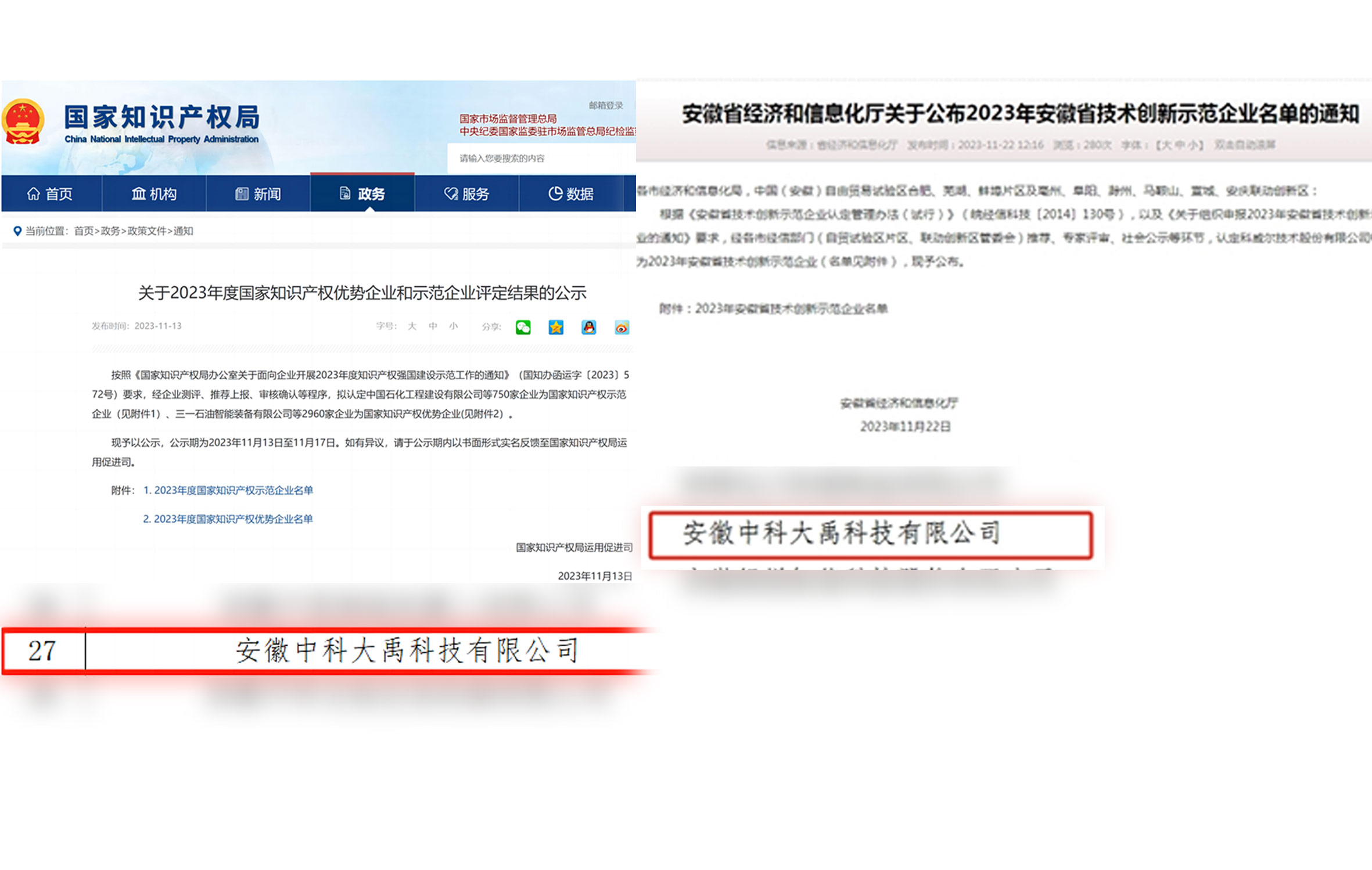 • 評定為2023年度國家知識產(chǎn)權(quán)優(yōu)勢企業(yè) 入選2023年安徽省技術(shù)創(chuàng)新示范企業(yè)名單